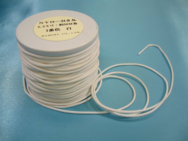 NYロービキ丸紐・2、5ミリ (1)白 約50Mボビン巻
